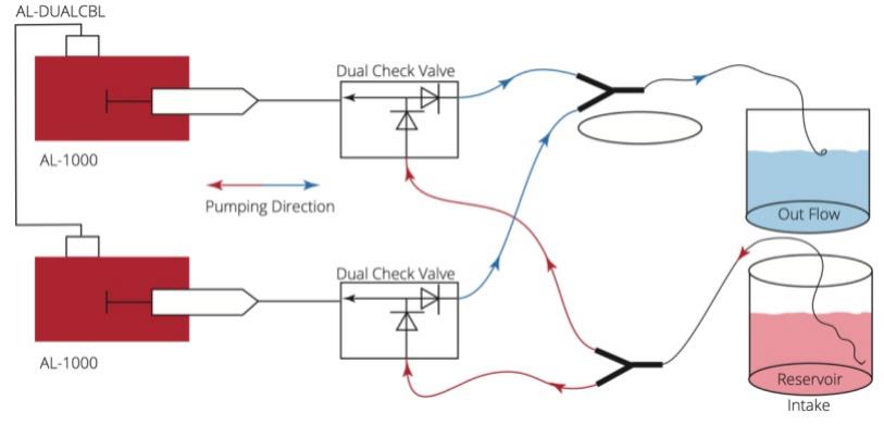 AL-2000是两个AL-1000单通道泵通过线连接的双泵系统。AL-1000和AL-2000都提供注射和回吸功能,以及手动触发的注射。这两个选项都能够按多步泵送顺序进行编程,而无需计算机。